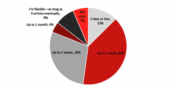 - Most people are willing to wait at least a week for their orders, including Gen Z